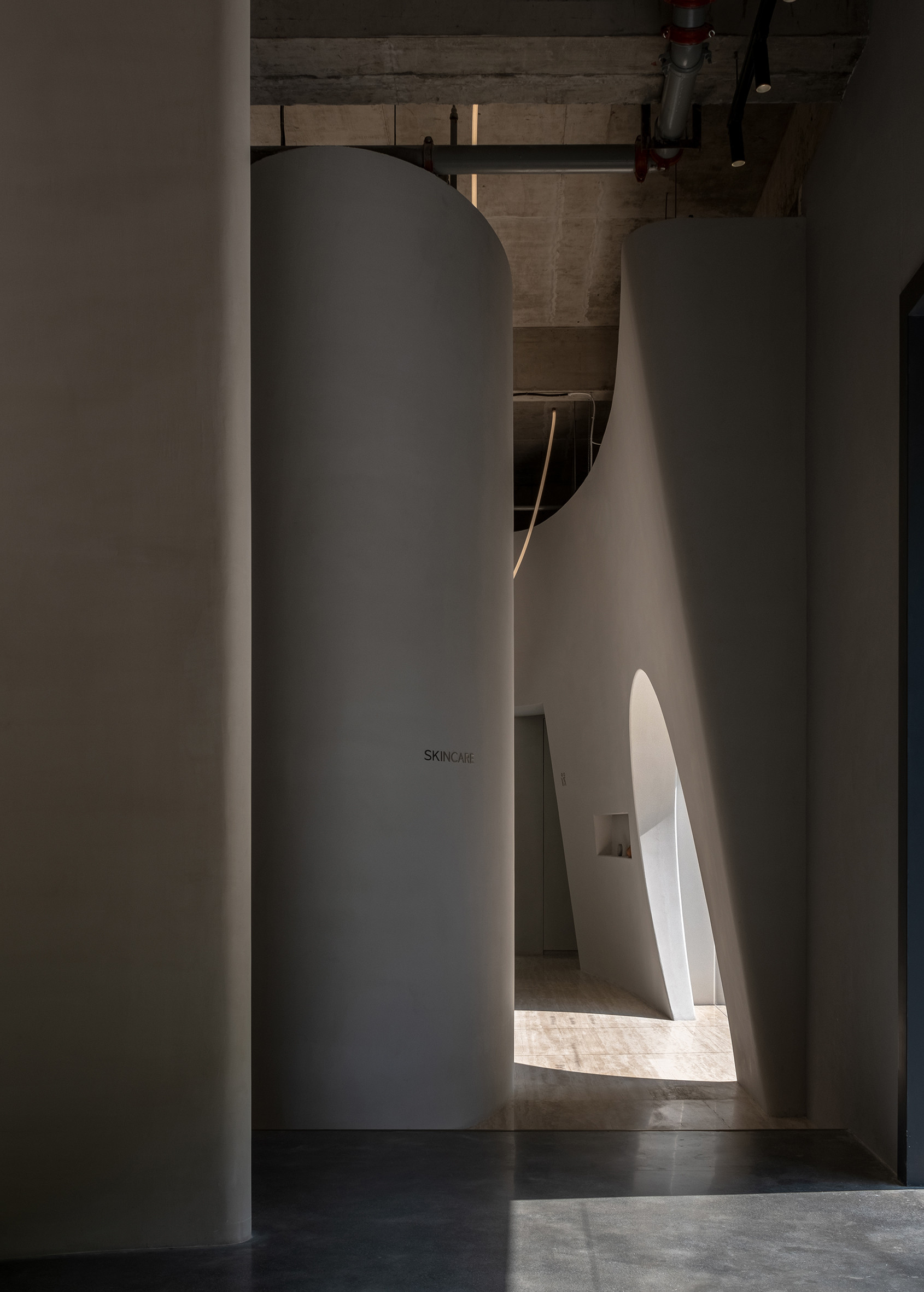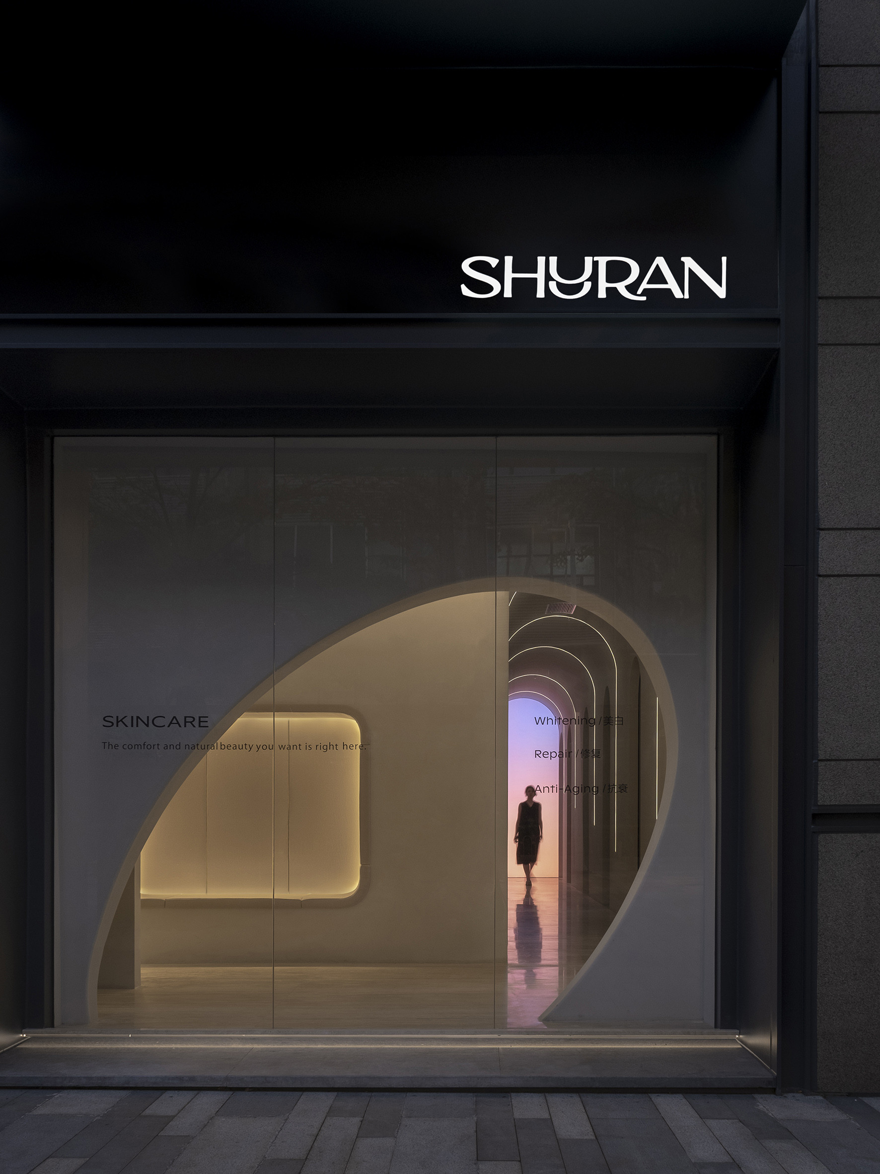 After SHURAN Wellness Space, E Studio has completed the entire design concept of Shuran — Shuran Skincare. Shuran Skincare will be located in the same block with the Wellness Space. The idea of time extension is to contemplate the organic integration and differentiation of two different forms of business such as massage and beauty under the same brand.