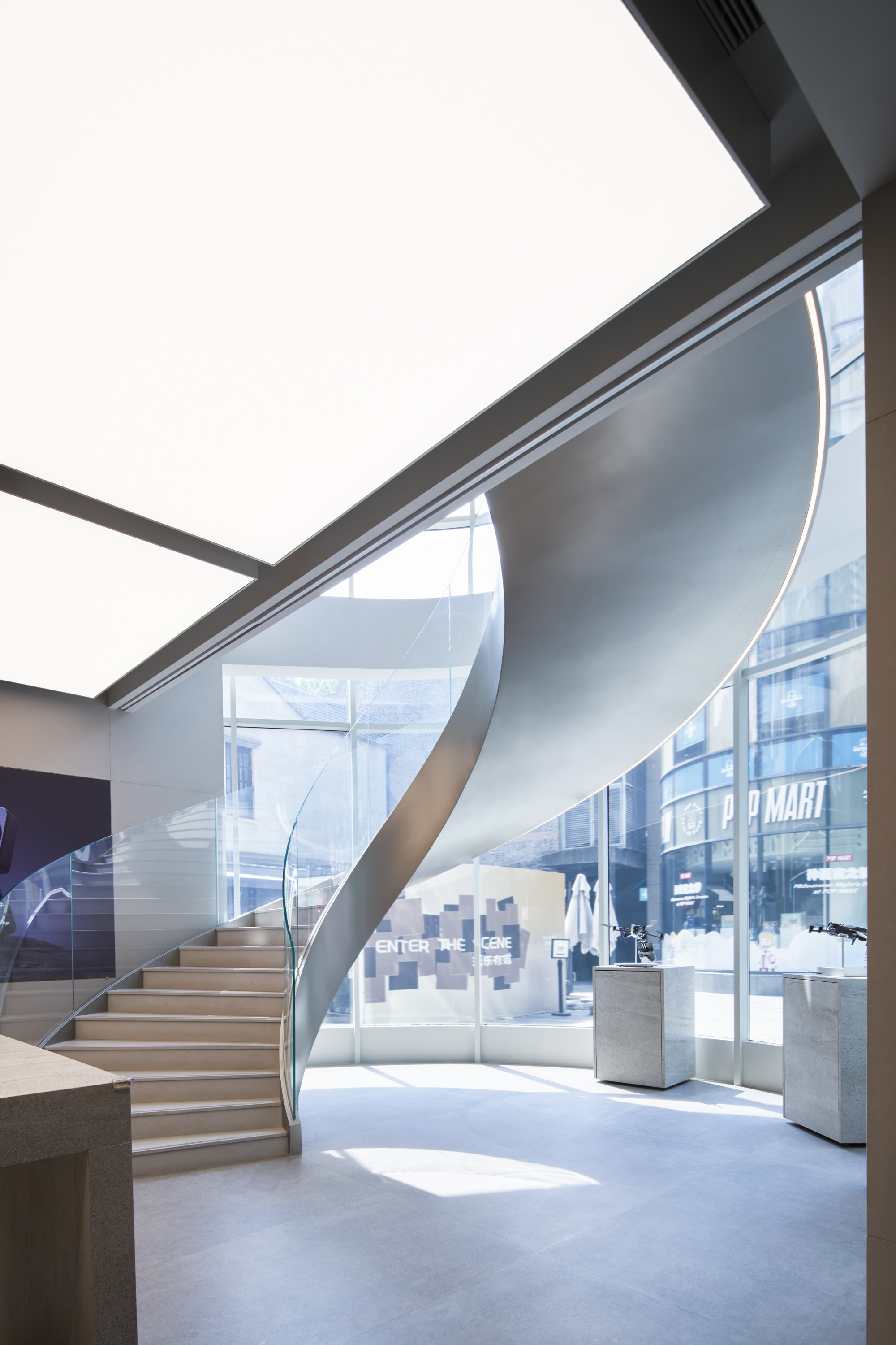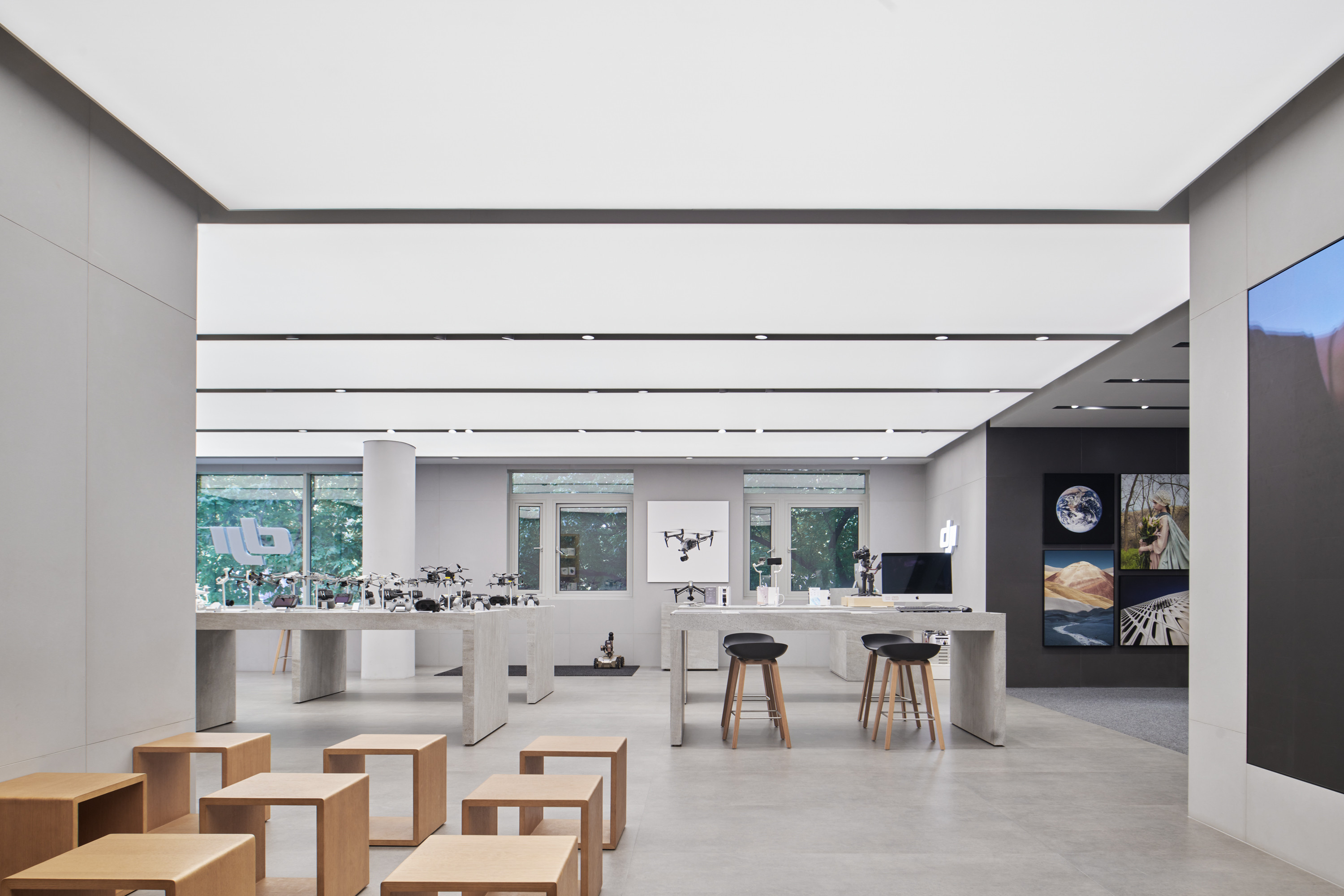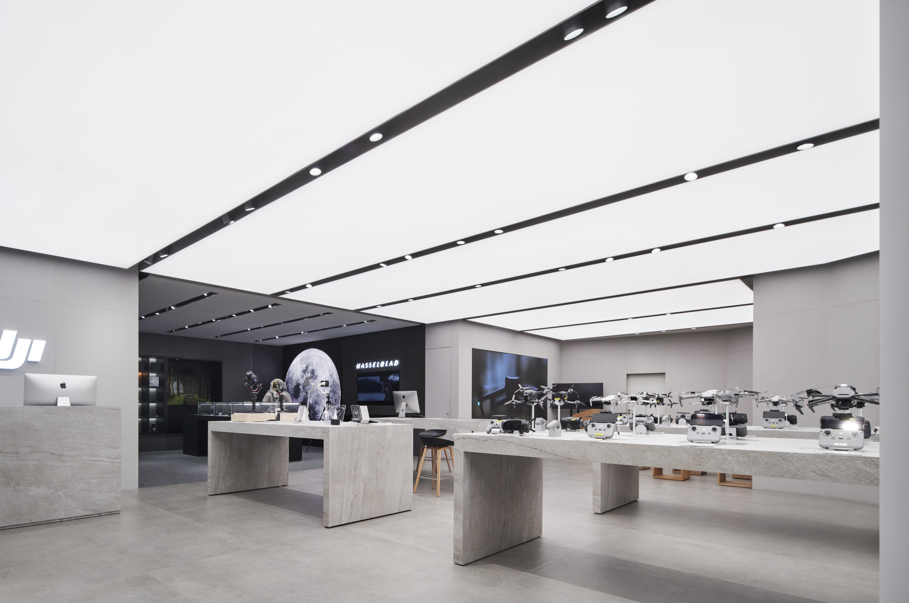 The challenge in developing the image of DJI&HASSELBLAD concept Store SI was to explore a balance between two brand attributes: “DJI innovation representing the future” and “Hasselblad camera standing for the immortal classic”, and the brand convergence and differentiation in the same retail scenario.