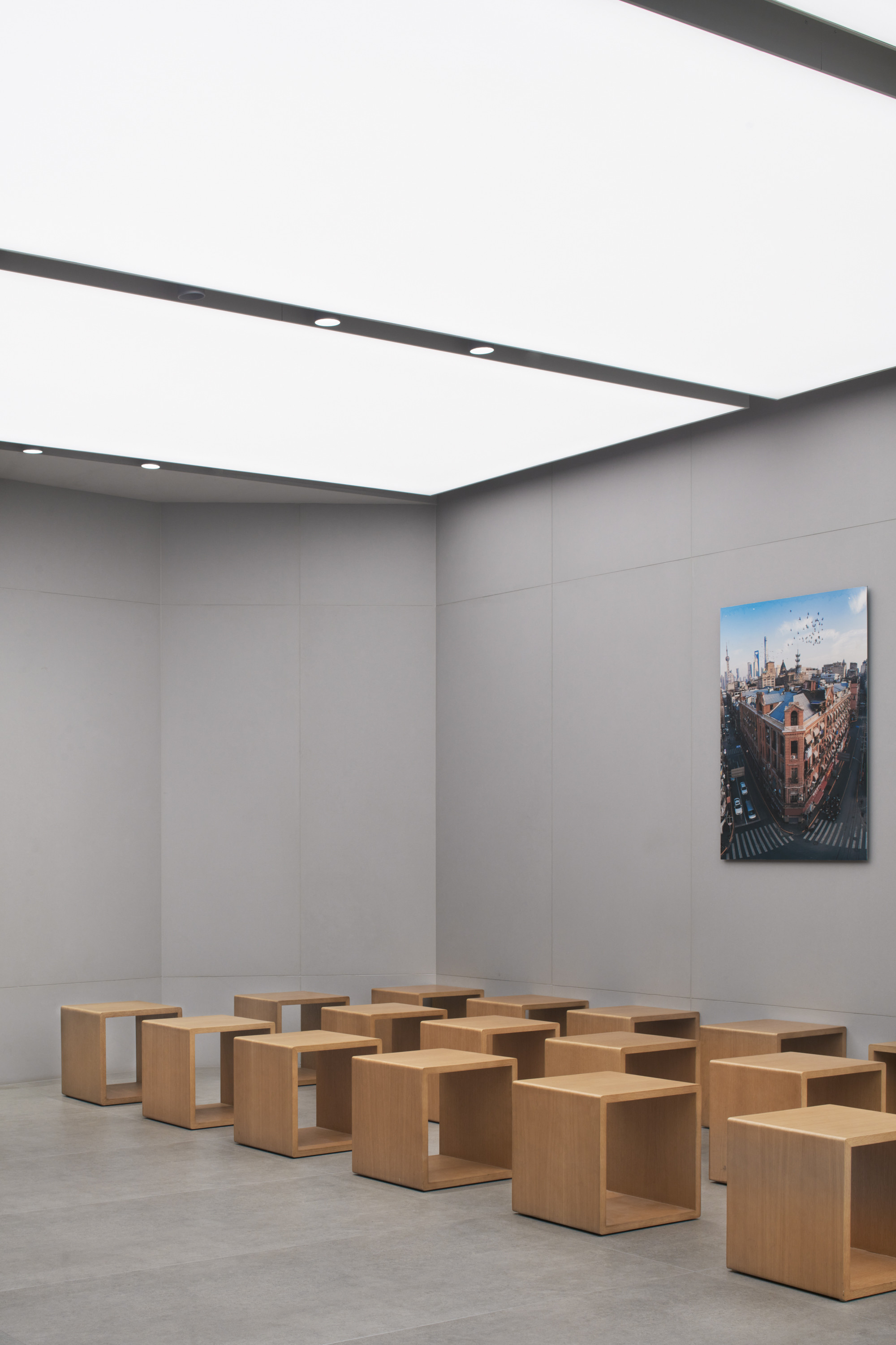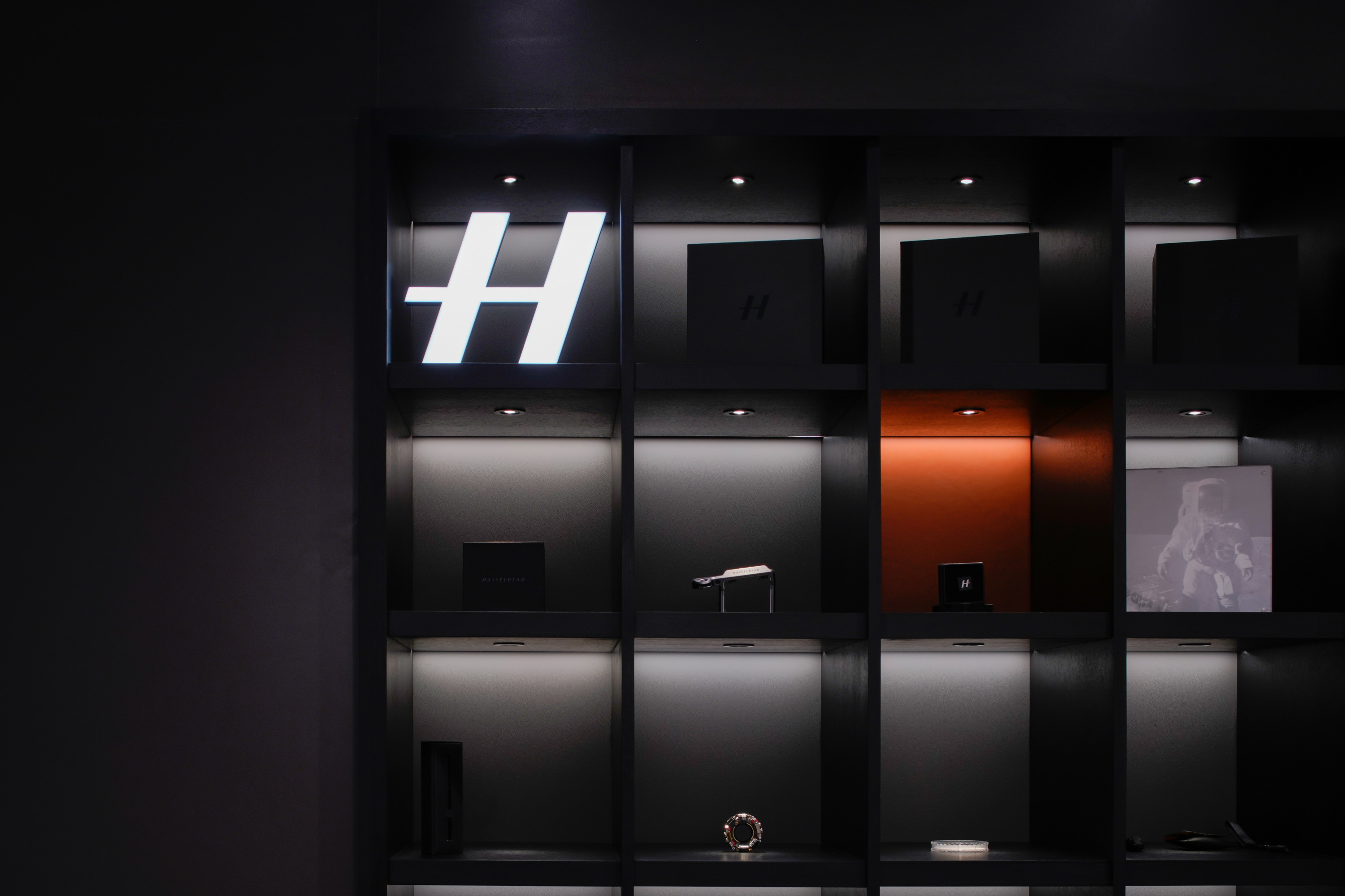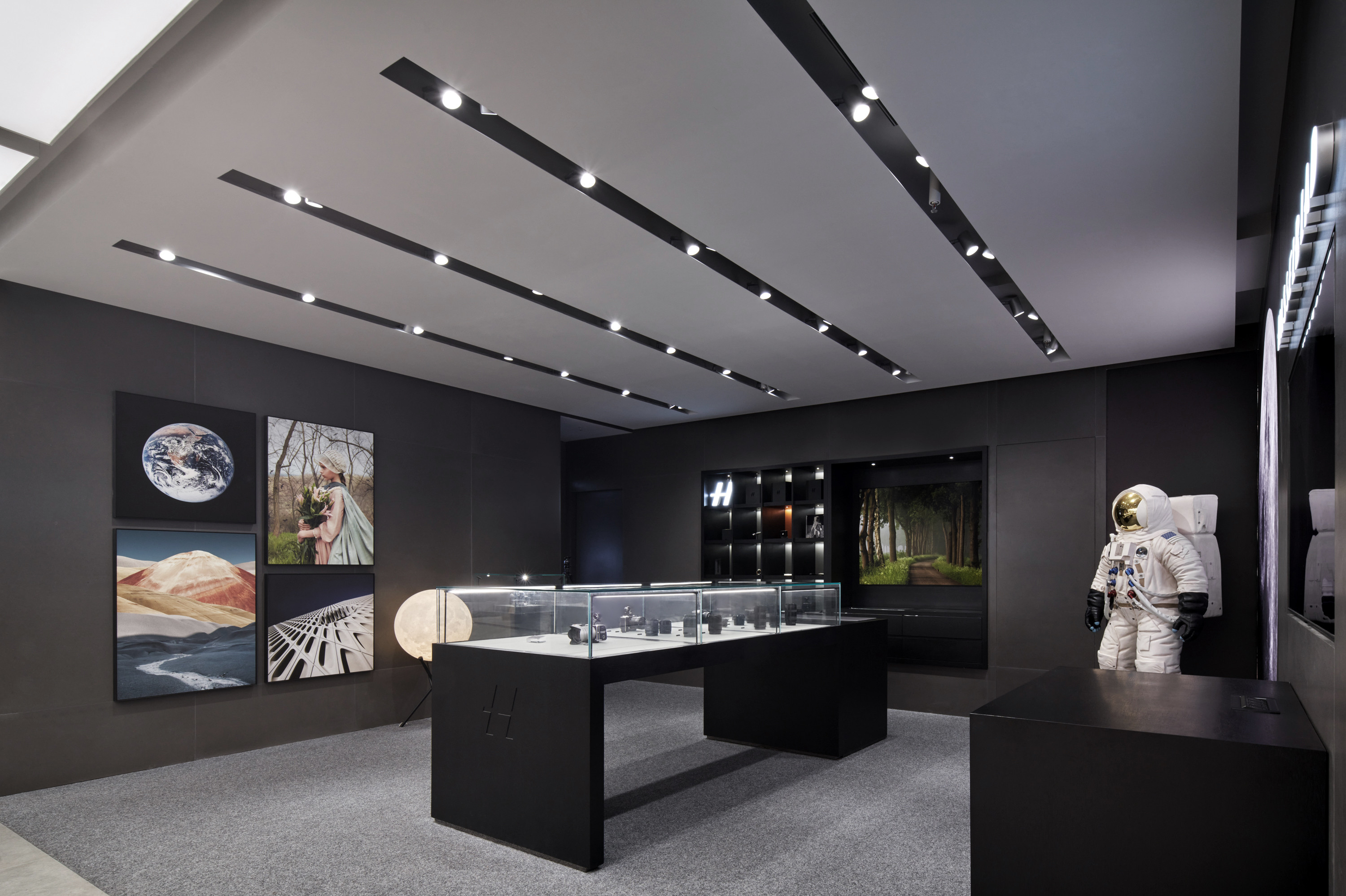 DJI&HASSELBLAD概念店SI的形象开发难点在于在两个品牌属性中寻找平衡点:“代表未来的大疆创新”和“代表永恒经典的哈苏相机”,在同一零售场景中品牌的融合与区分。